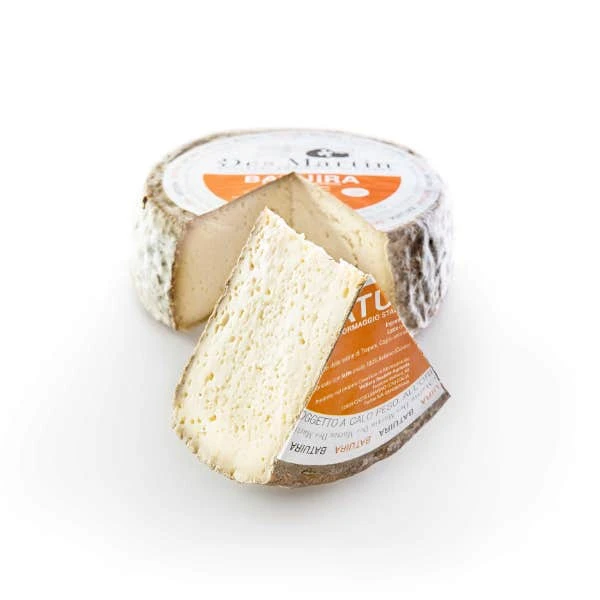 Batuira is a raw-milk cheese with a semi-hard paste, recognizable also by its peculiar fine and delicate, well-distributed eyes, like an orderly constellation to be traversed first with the eyes, then with the nose. The ash-colored, thin and slightly moldy rind guards, and then reveals, an intense aroma and taste, which leaves a delicate salty note on the palate.