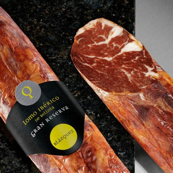 Lomo de Bellota Admiracion is one of Spain’s most famous cured pork products. It is the fillet of pork that is sprinkled with salt, paprika and other spices: it is then stuffed into natural casings and left to mature three or four months in special drying rooms. The outside surface is light red, the inside is bright red and has the typical veins when cut. The Admiracion Line guarantees the highest excellence.