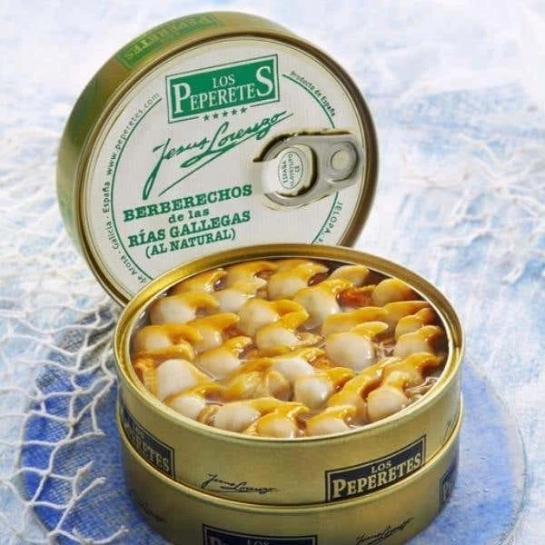 Canned berberechos, cockles or sea hearts, from RÃas Gallegas al Natural are sustainably caught. Only the best are selected, and the natural cleaning process begins in seawater.