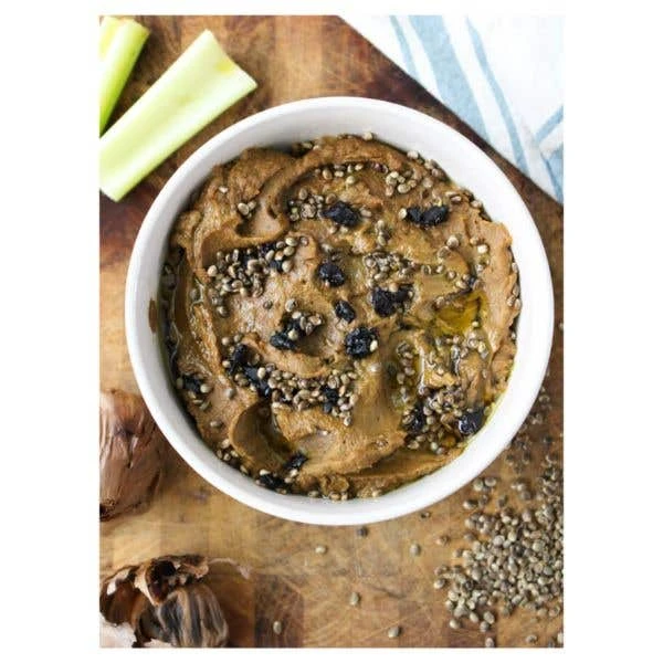 This black garlic hummus brings a pleasantly balsamic and savory flavor to your dishes. The texture of chickpeas combines with the unique flavor of black garlic to create a ready-to-use chickpea-based cream.
