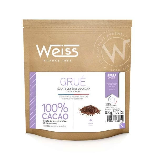 Cocoa grue are crumbled pieces of dried cocoa beans. They are part of the same cocoa bean used in making chocolates and are ready to be used for your molds or pastries.