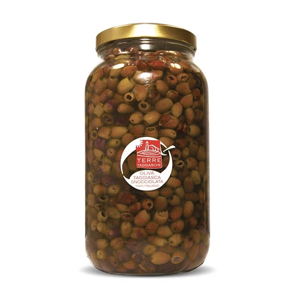 Taggiasca olives are full of flavor, soft but crunchy, with a distinctive mildly bitter taste. After being harvested and carefully selected, the olives are washed, de-stemmed and calibrated, and then added to the brine consisting only of water and salt. When they are ready, they are pitted and covered with extra virgin olive oil.